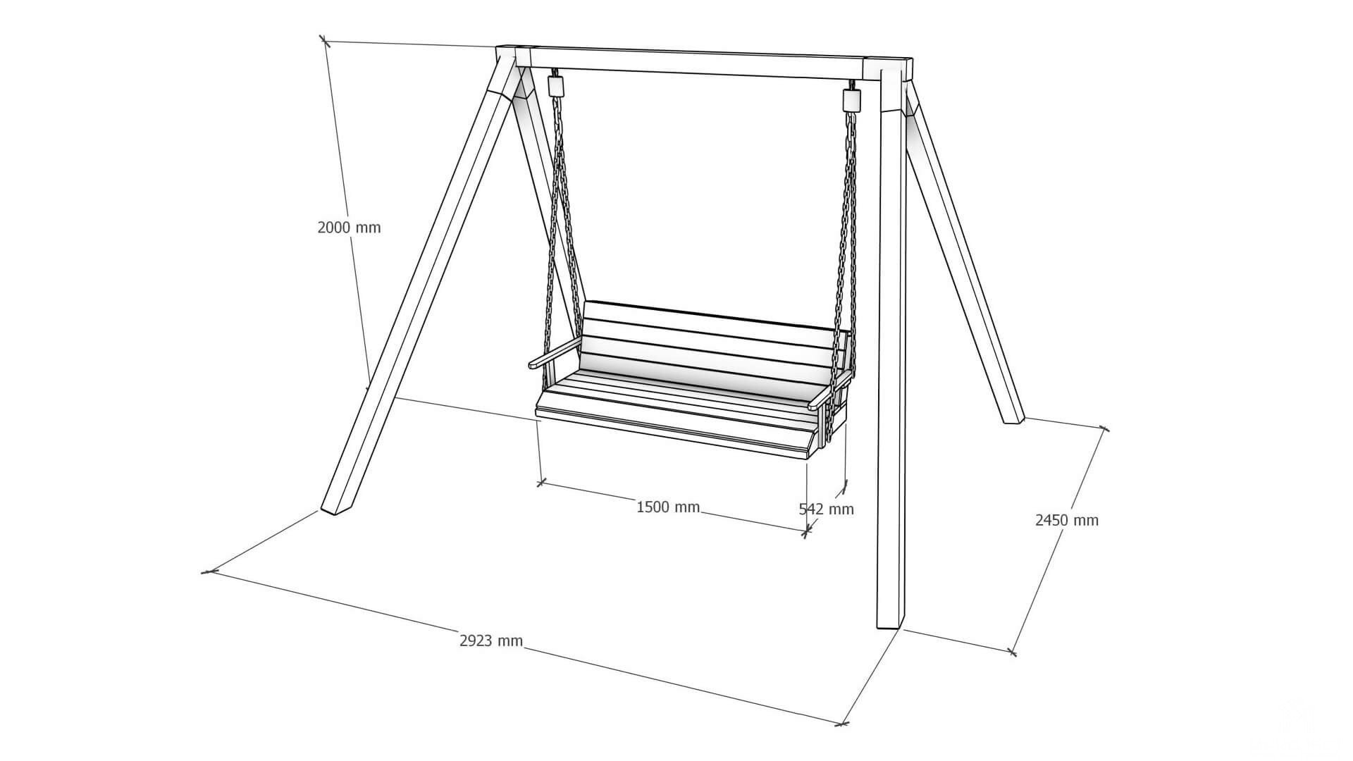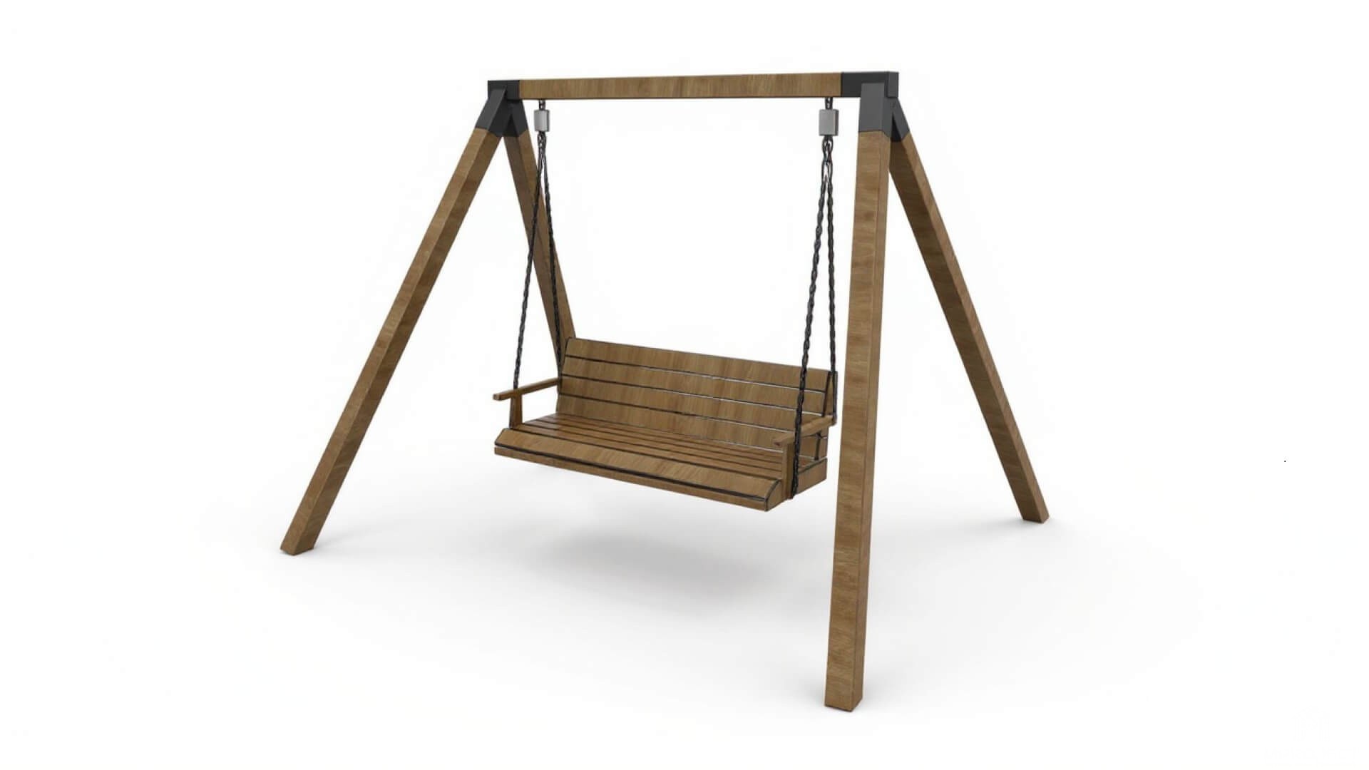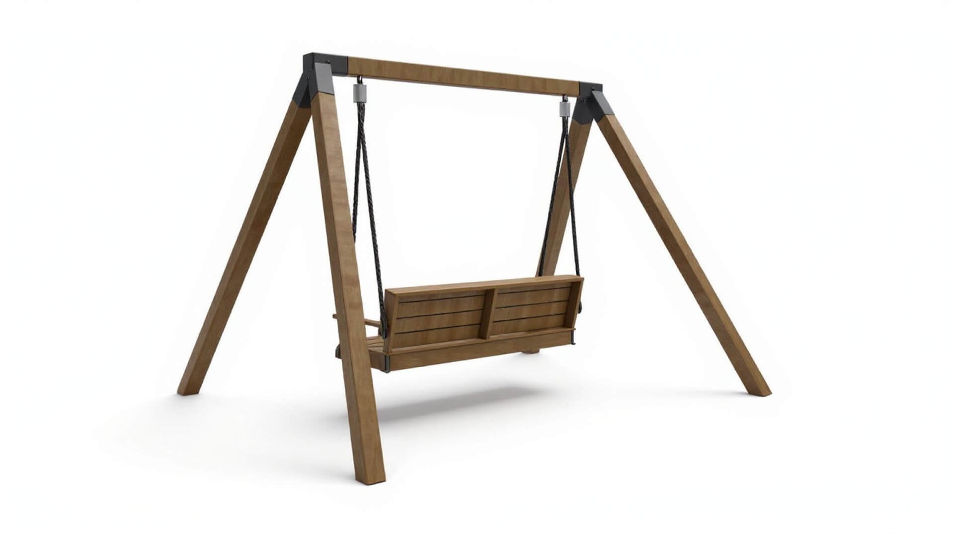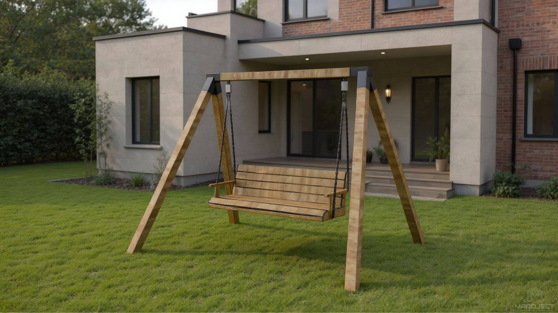 Minimalistyczna huśtawka ogrodowa o tradycyjnej formie, idealna do aranżacji tarasu lub ogrodu.