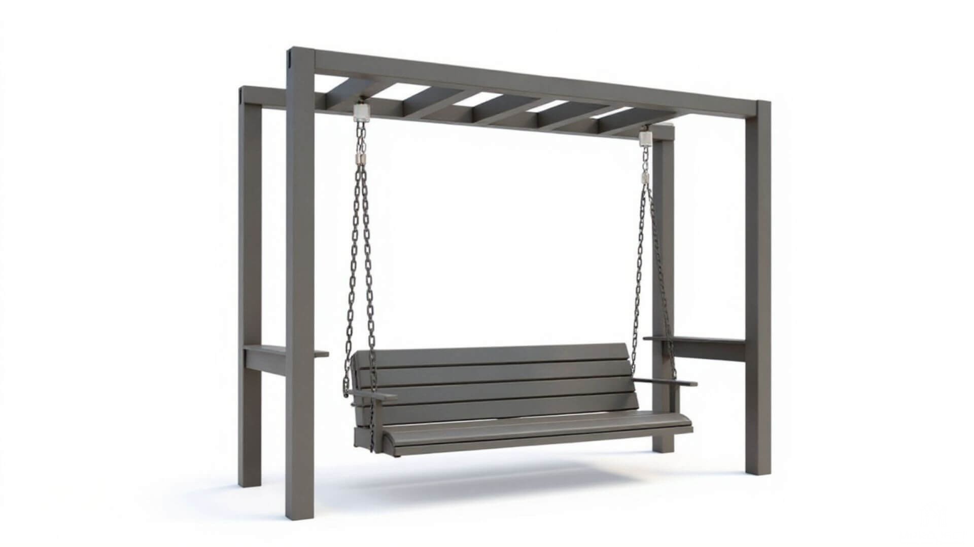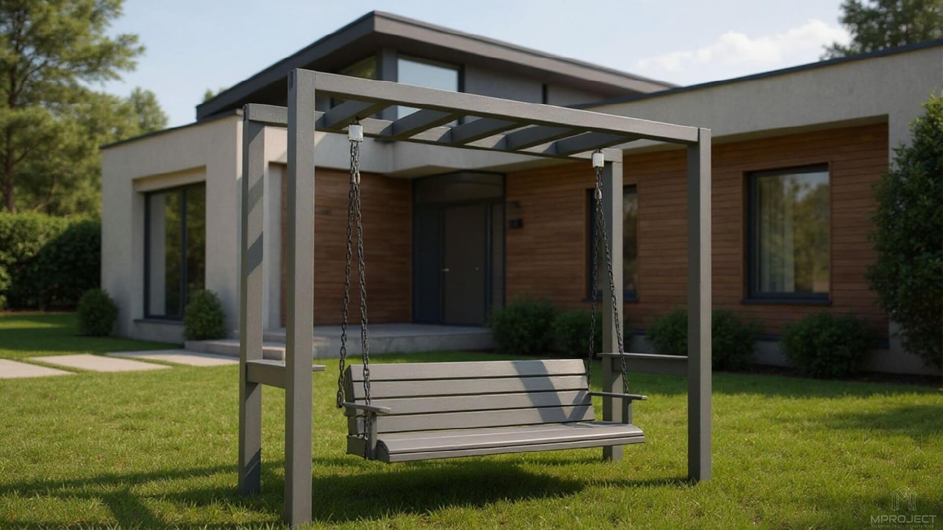 Stabilna huśtawka ogrodowa z drewna. Urbanistyczny styl i wygoda wpisują się idealnie do przydomowych ogrodów.