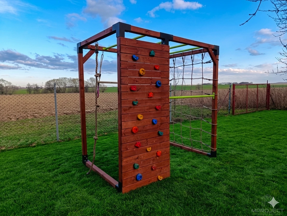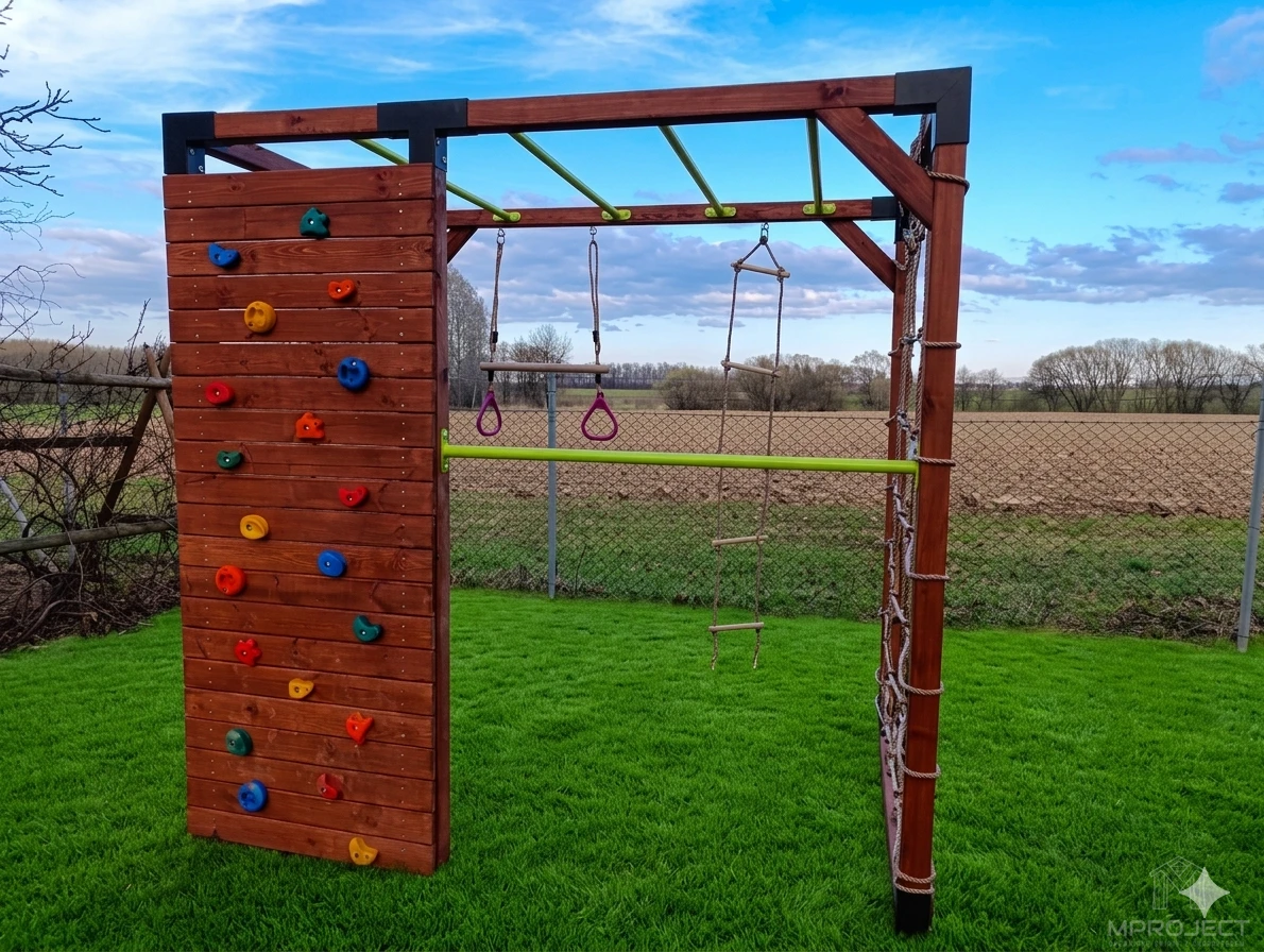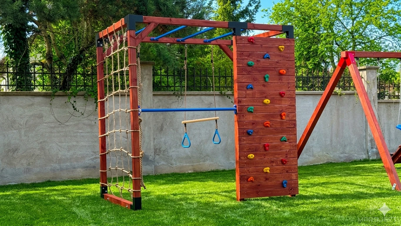 Konstrukcja wspiera rozwój siły, równowagi i koordynacji. Doskonały wybór do nowoczesnych ogrodów i stref relaksu.